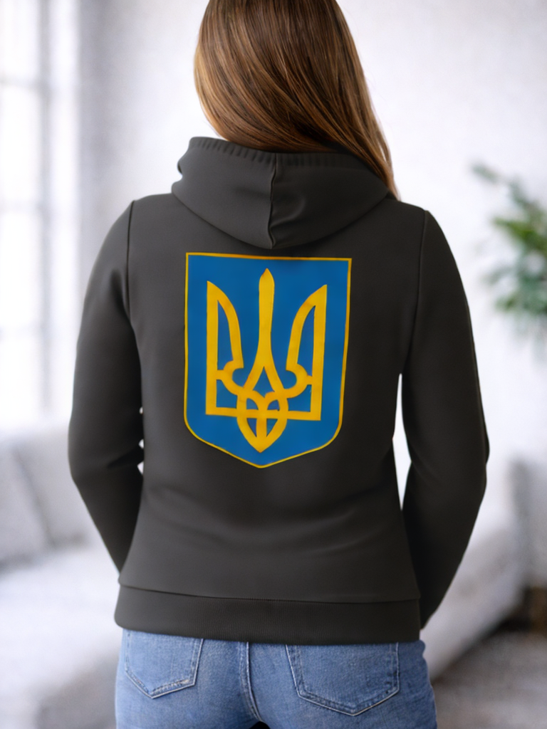 Hoodie Ukraine Dreizack Vorder- und Rueckseite